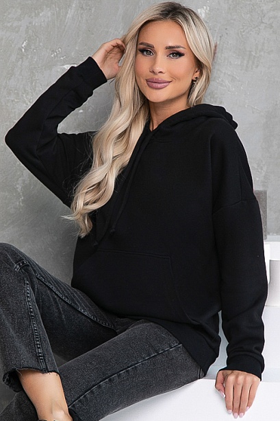 - Свитшот свободного силуэта с капюшоном,из хлопкового трикотажного полотна футер трехнитка(ткань производство Турция) .Манжеты из хлопковой трикотажной рибаны.По переду функциональный накладной карман.