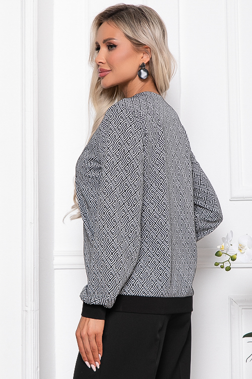 - Комбинированный джемпер свободного силуэта из трикотажного полотна джерси и жаккардового трикотажа гусиная лапка.