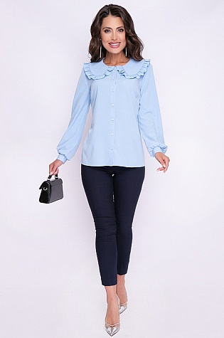 Блузка из трикотажного полотна с цельнокроеными рукавами и притачным поясом по низу.