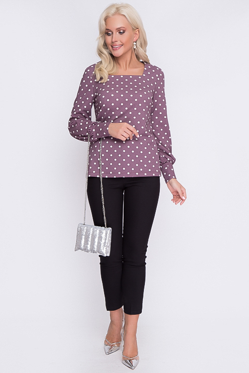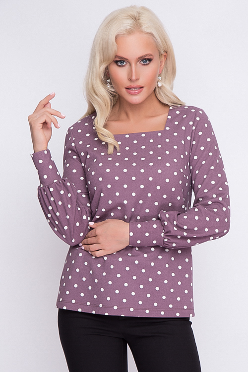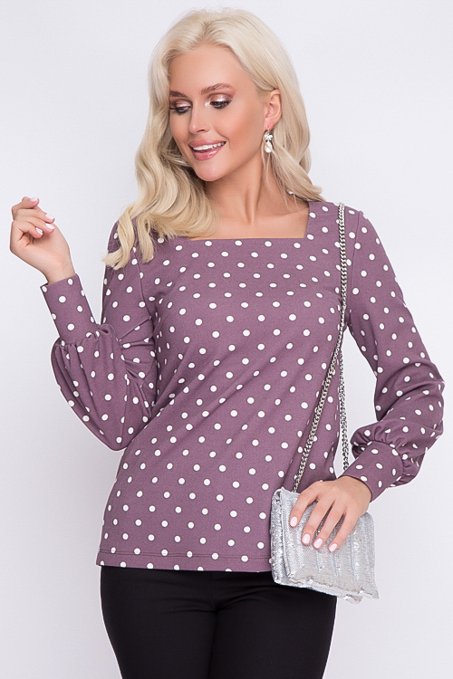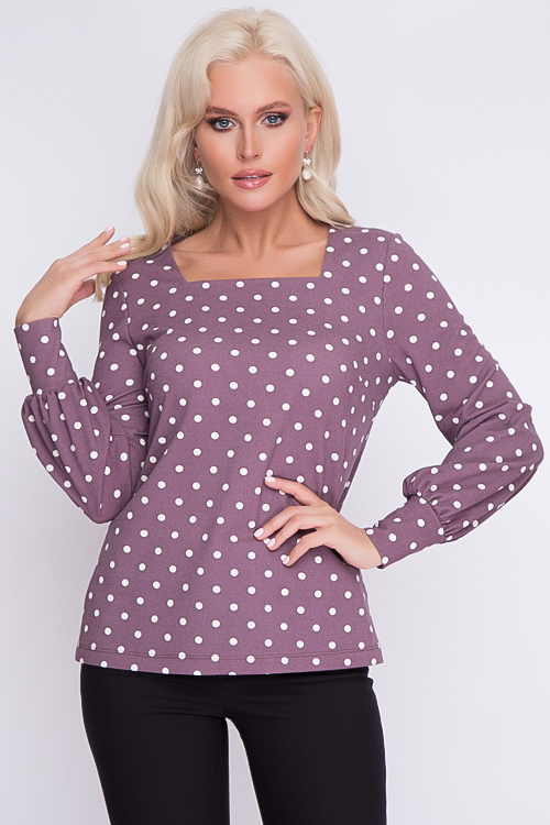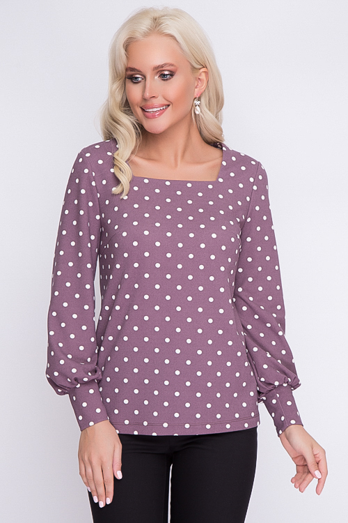 Блузка из трикотажного полотна с вырезом каре по горловине.