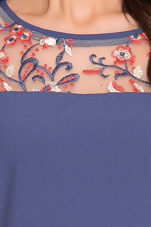Блузка из текстильного полотна с цельнокроеными рукавами и кружевной кокеткой.