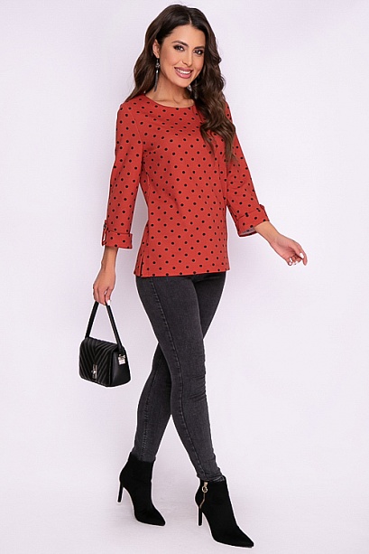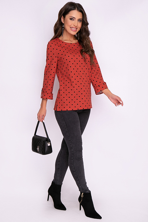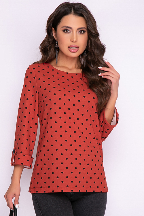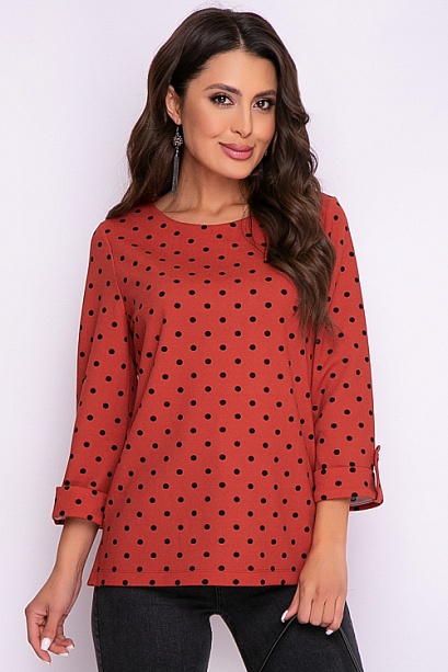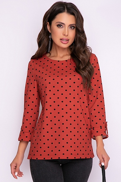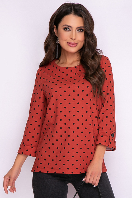 Блузка из трикотажного полотна свободного силуэта в горох.