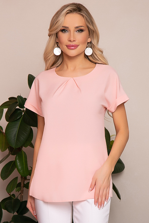 Блузка из текстильного полотна свободного силуэта с цельнокроеными рукавами.
