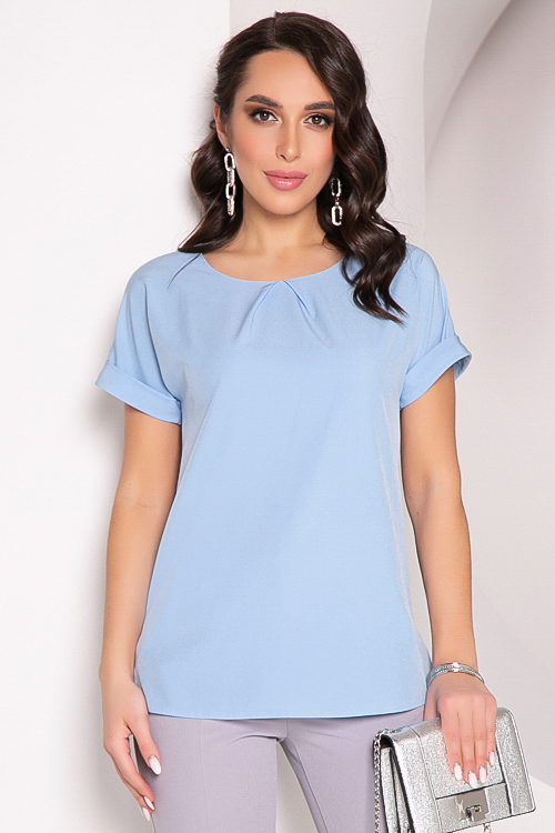 Блузка из текстильного полотна свободного силуэта с цельнокроеными рукавами.