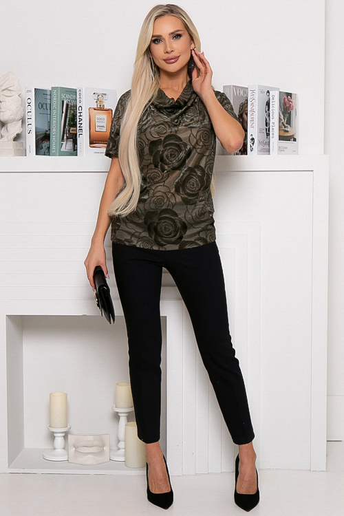 Блузка из трикотажного полотна с бархатистым рисунком.Цельнокроеные рукава и горловина с вырезом качель.