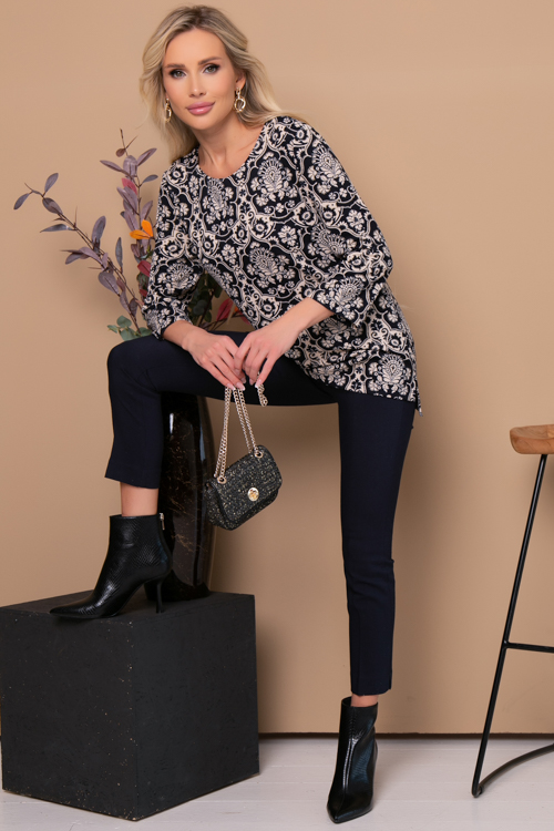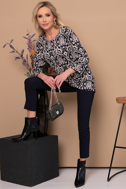 Блуза-туника свободного силуэта из трикотажного полотна.