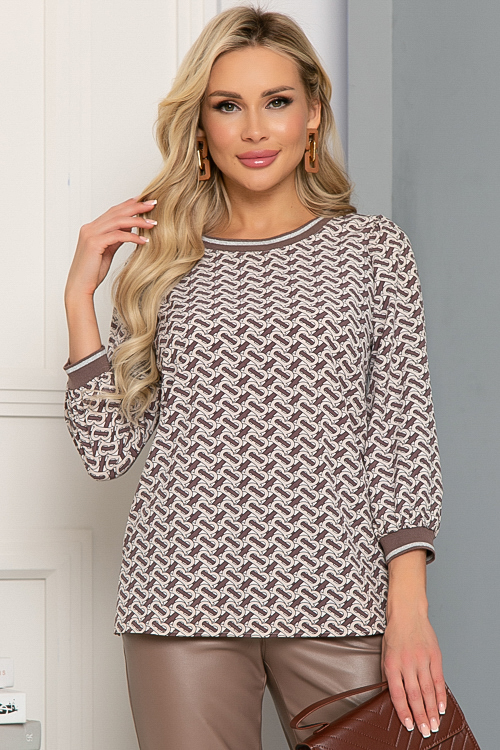 Блузка из текстильного полотна с подвязами по рукавам и горловине.