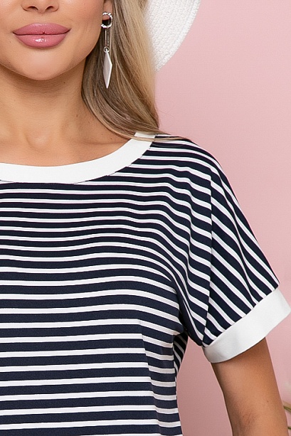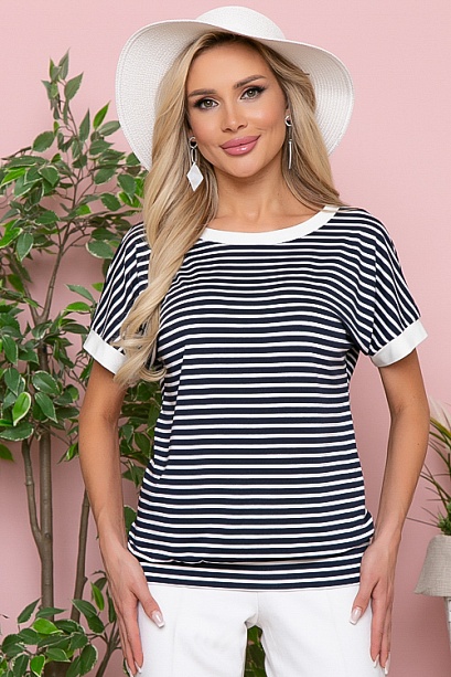 Блузка из трикотажного полотна в полоску с контрастной отделкой.