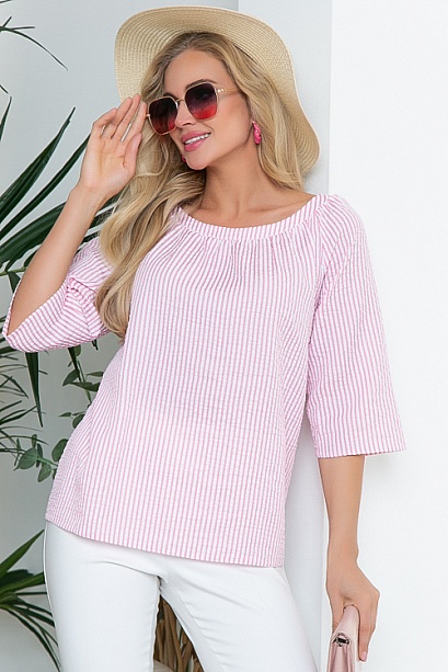 Блузка свободного силуэта из комфортной хлопковой ткани в полоску.