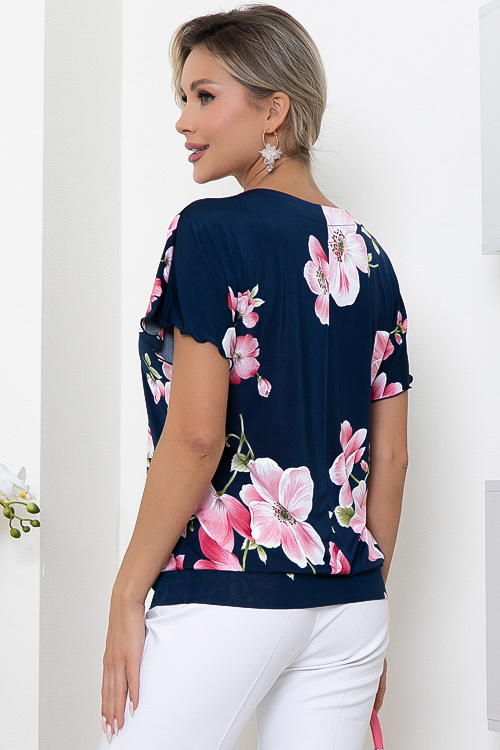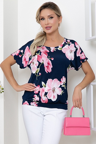 Блузка из трикотажного полотна с цельнокроеными рукавами и притачным поясом по низу.
