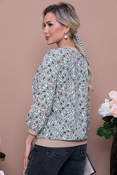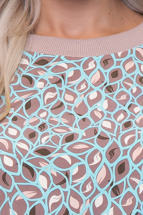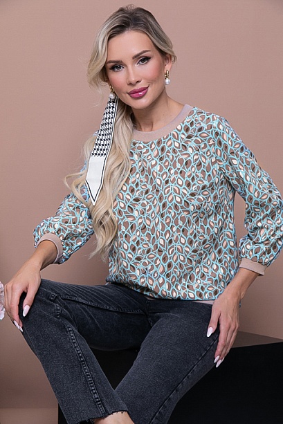 Блузка из текстильного полотна свободного силуэта.Горловина,манжеты и притачной пояс-из хлопковой трикотажной рибаны.(Рибана производство Турция)