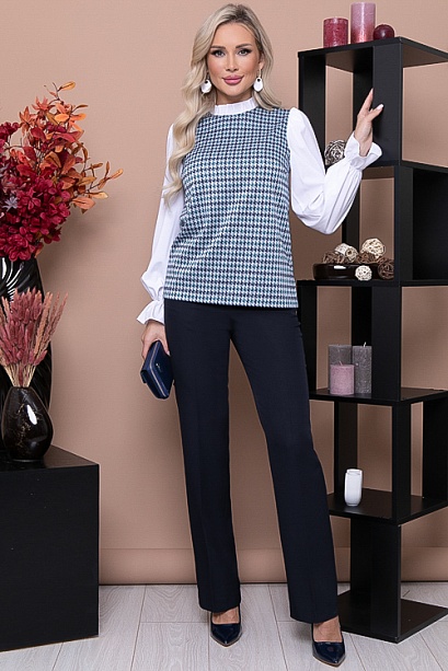 Комбинированная блузка из жаккардового трикотажного полотна с рукавами из текстильного полотна и рюшей по горловине.