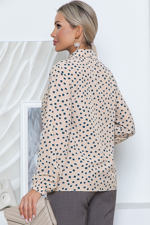 Блузка-рубашка из текстильного полотна с центральной застежкой по полочке до низа.