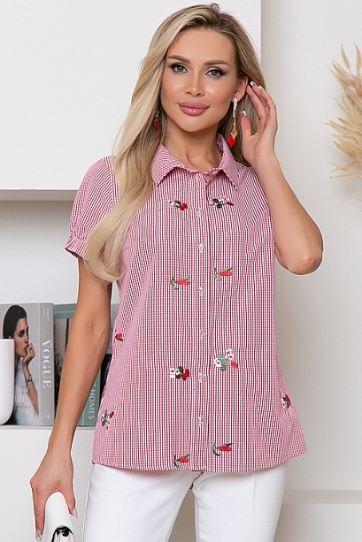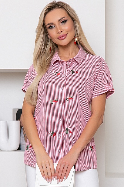 Рубашка из текстильного полотна с хлопком в мелкую клеточку с вышивкой.