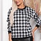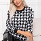 Джемпер из жаккардового трикотажного полотна в гусиную лапку с отделкой трикотажной рибаной.