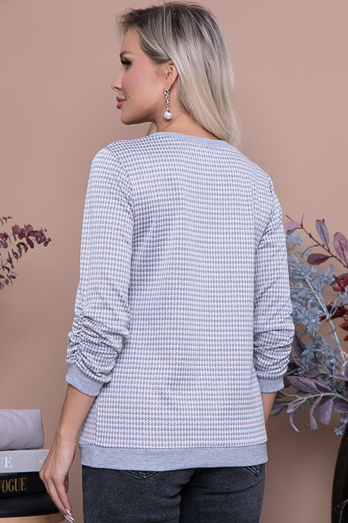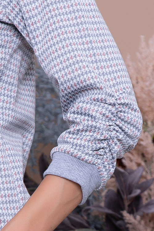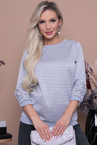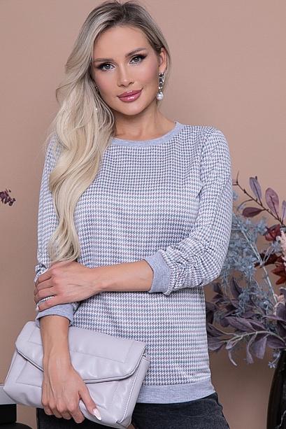 Джемпер из жаккардового трикотажного полотна в гусиную лапку с отделкой трикотажной рибаной.