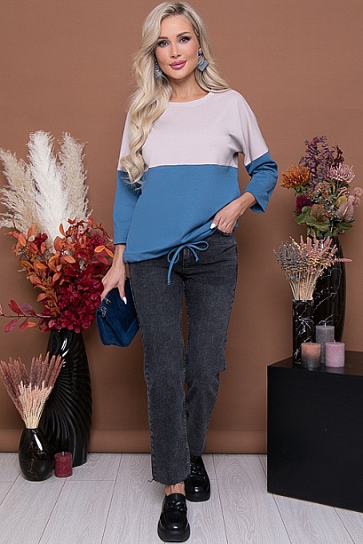 Комбинированный джемпер из трикотажного полотна свободного силуэта с кулиской по низу.