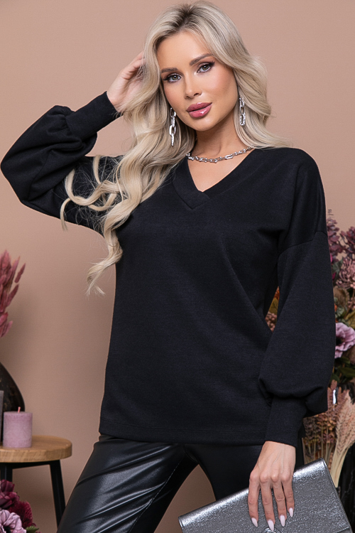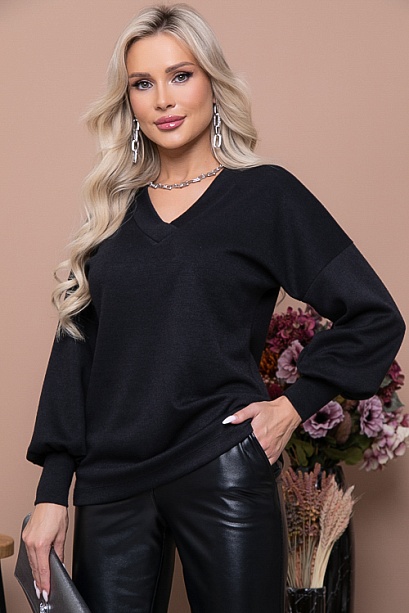 - Джемпер свободного силуэта с V-вырезом горловины из трикотажного полотна.