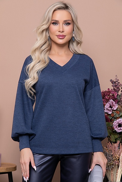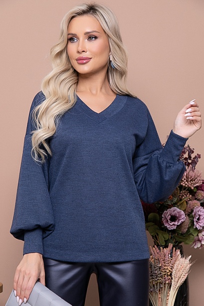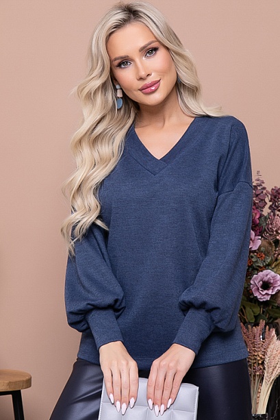 Джемпер свободного силуэта с V-вырезом горловины из трикотажного полотна.