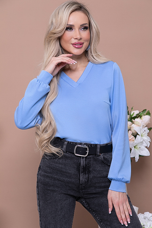 Джемпер из трикотажного полотна джерси с V-вырезом горловины.