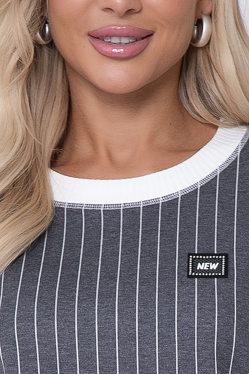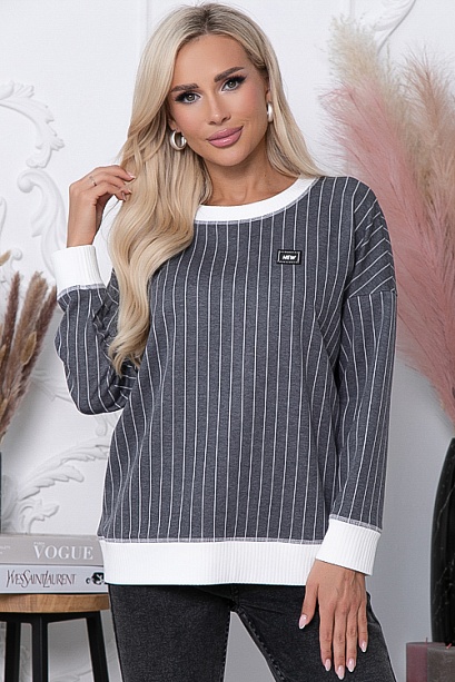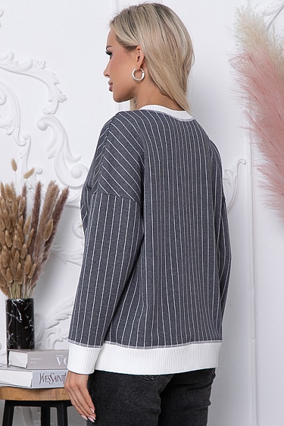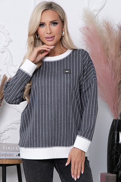 - Джемпер из жаккардового трикотажного полотна в полоску свободного силуэта, дополнен отделкой вискозной, трикотажной белой рибаной.