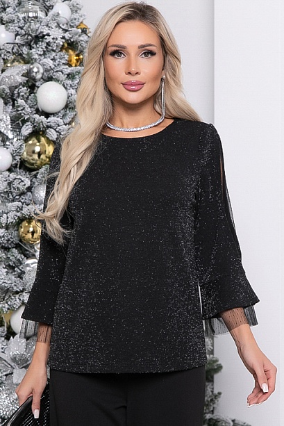 - Нарядная блузка из трикотажного полотна с люрексом.Рукав 3/4 с оригинальной вставкой из сетки