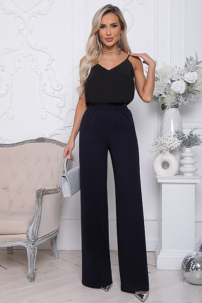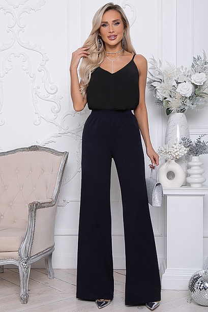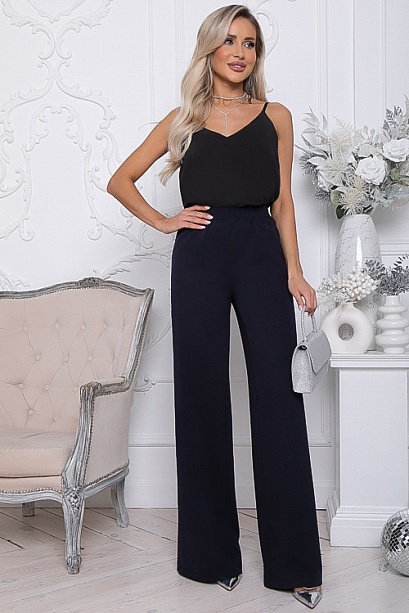- Брюки из трикотажного полотна расширенные к низу, с эластичной резиной в поясе ,хорошо подходят для нарядных образов с блузками и туниками.