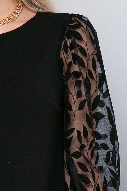 Платье трапеция из трикотажного полотна с красивыми втачными рукавами из сетки с бархатными напылением.