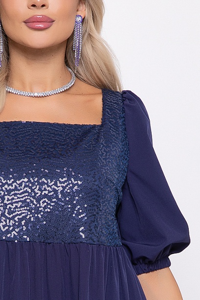 Платье из текстильного полотна с двумя ярусами оборок и пайетками по лифу.