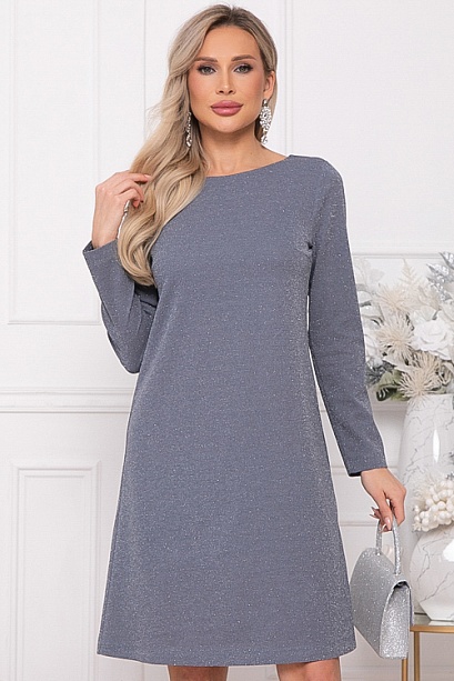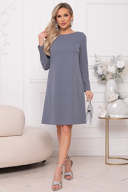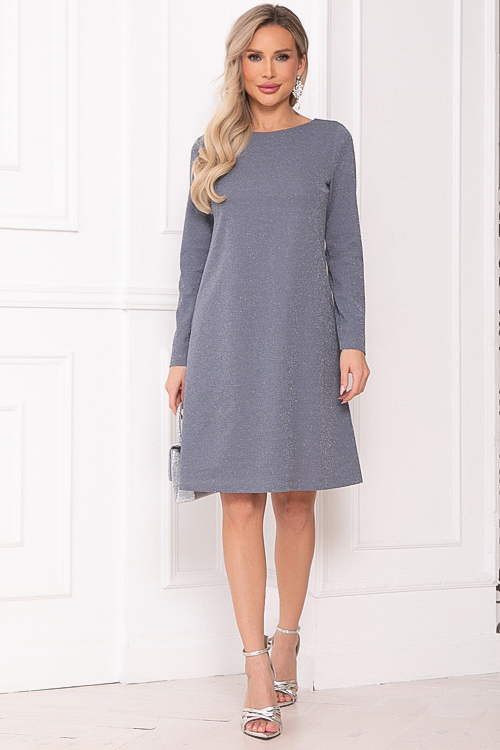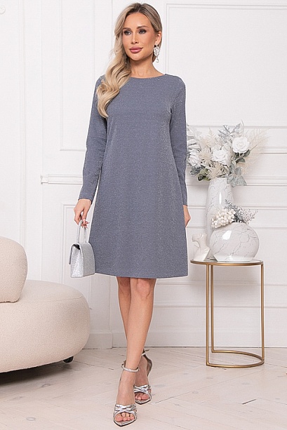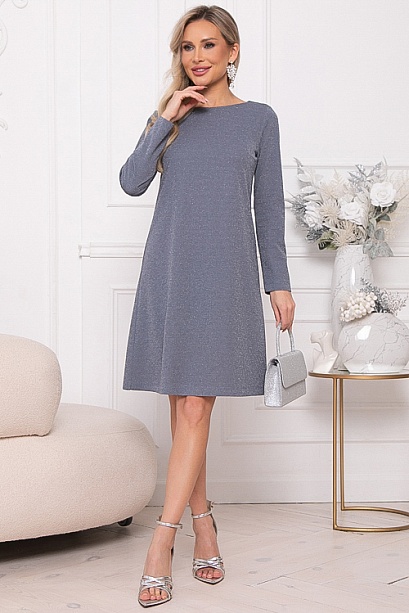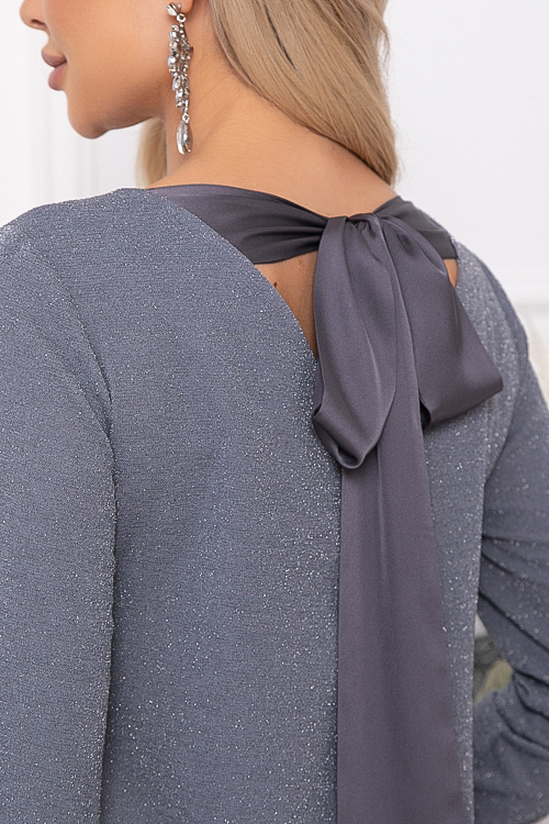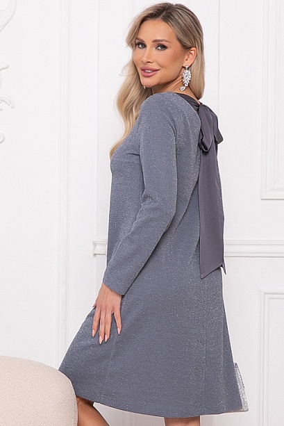 - Платье А-образного силуэта из трикотажного полотна с легким люрексом.Изюминка платья-вырез по спинке с завязывающимся бантом из шелка.