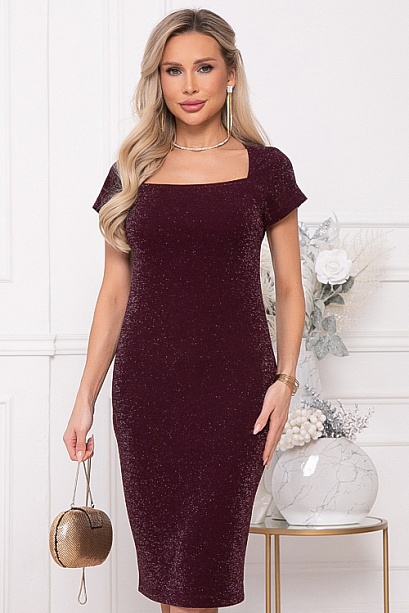 - Платье полуприлегающего силуэта из трикотажного полотна с легким люрексом с эффектным фигурным вырезом.