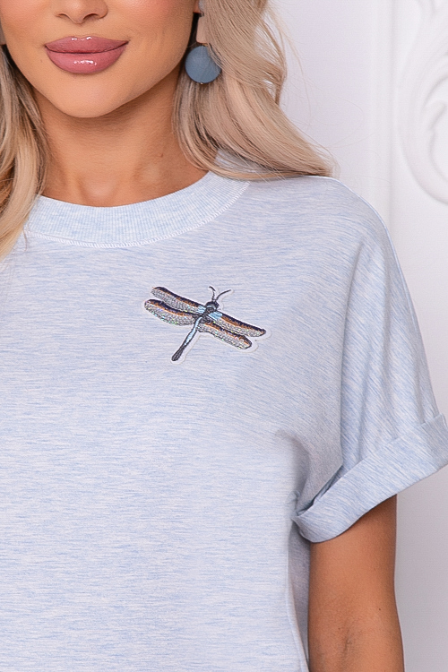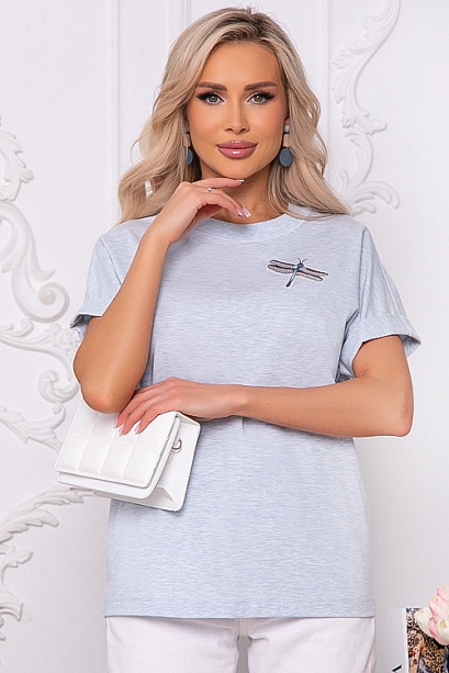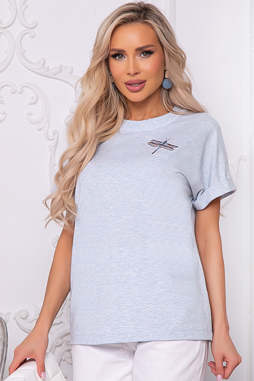 Футболка из трикотажного полотна свободного силуэта с отделкой из трикотажной рибаной и декоративным элементом по полочке.Ткань производство Турция-кулирная гладь и трикотаж рибана компаньон.