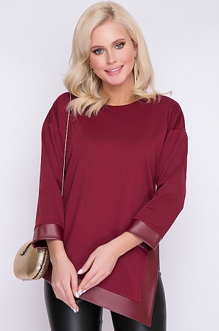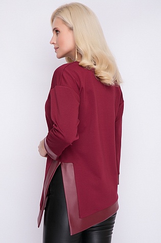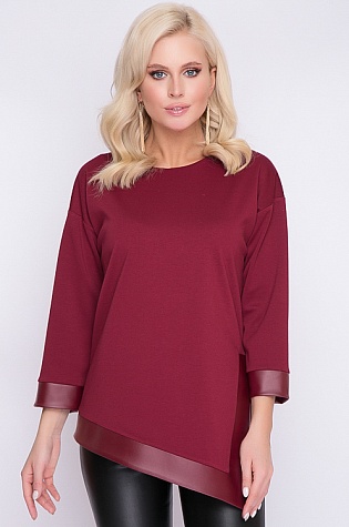 Блузка из трикотажа джерси с кожаной отделкой.