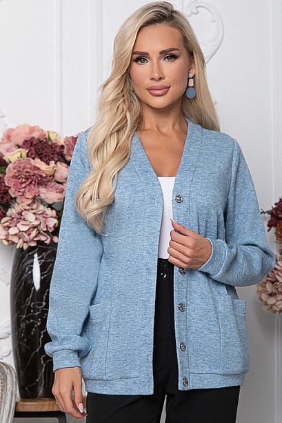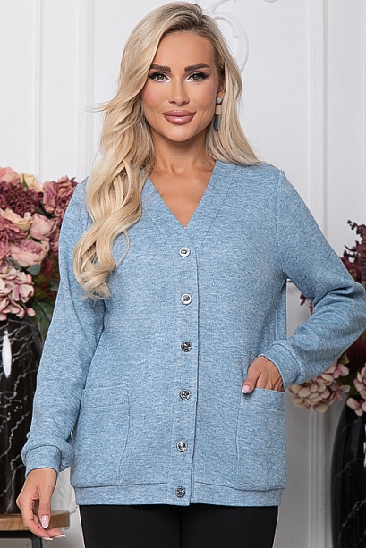 Кардиган свободного силуэта из комфортного,качественного трикотажа ангора с центральной застежкой по переду на петли и пуговицы, с удобными накладными карманами.
