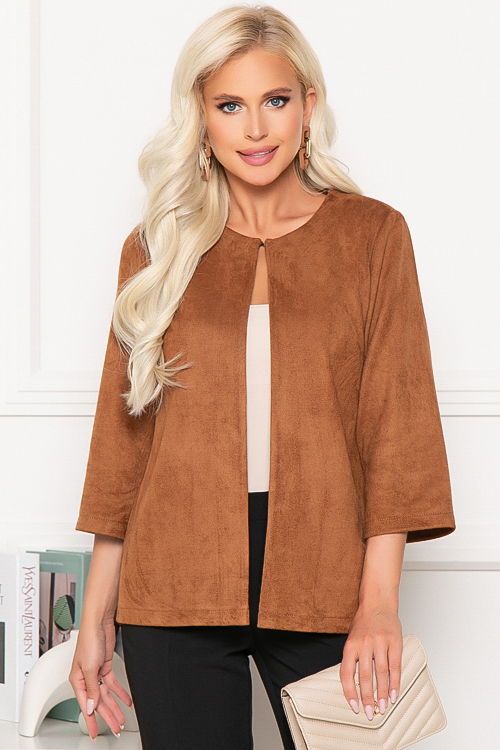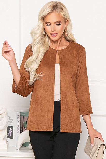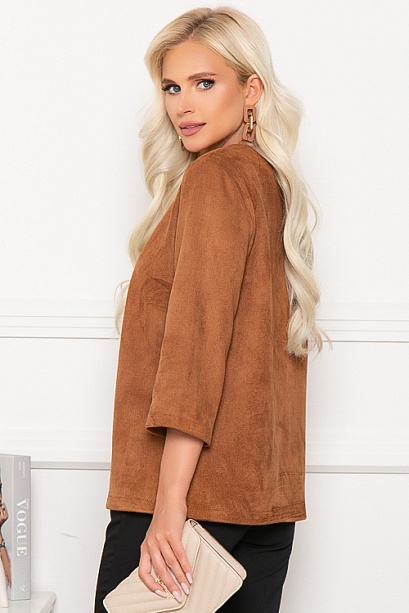 Жакет свободного силуэта из эко-замши на основе из трикотажа.