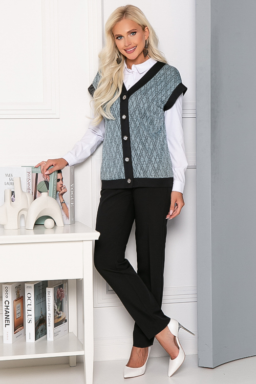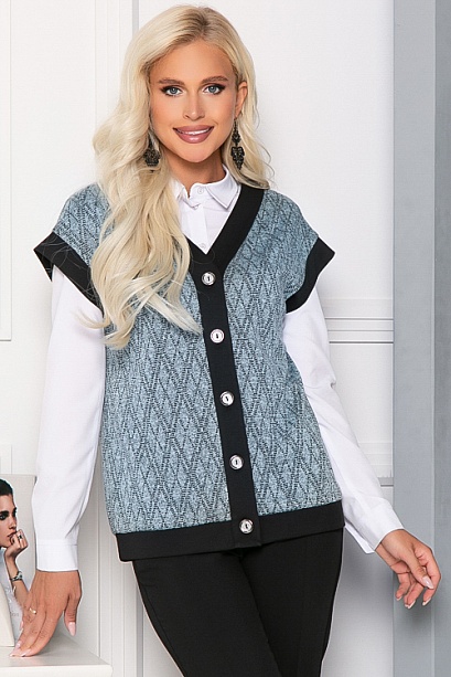 Жакет-жилет из трикотажного полотна с контрастной отделкой и центральной застежкой.