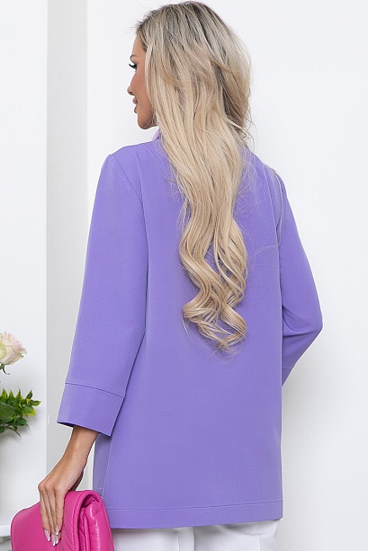Жакет свободного силуэта из текстильного полотна с застежкой на одну пуговицу.Воротник отложной с лацканами.По переду жакета накладные удобные карманы.