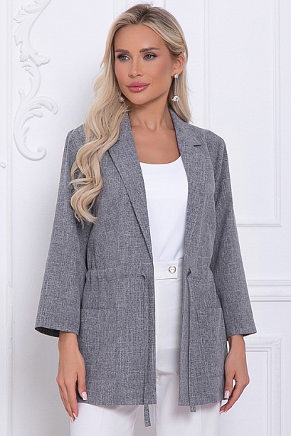 - Жакет из легкой костюмной ткани свободного силуэта. Воротник отложной с лацканами. По полочке функциональные накладные карманы.