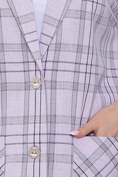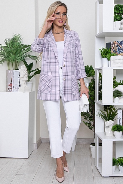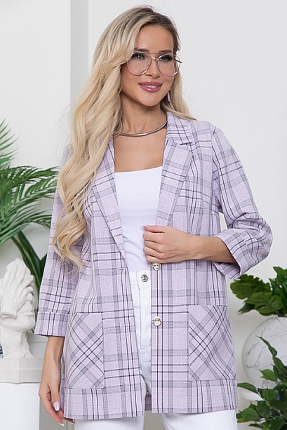 - Жакет из комфортной,качественной костюмной ткани свободного силуэта,в боковых швах разрезы.Центральная застежка на две пуговицы.По переду удобные накладные карманы.Рукава втачные.