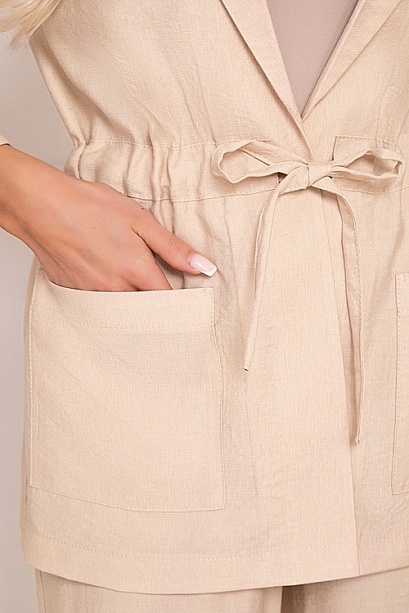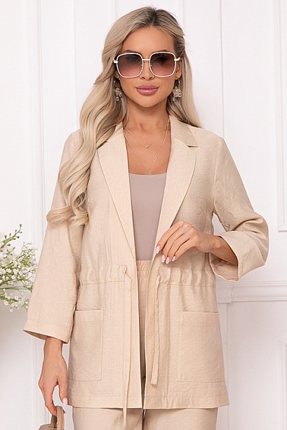 Жакет из легкой костюмной ткани(ткань производство Турция) свободного силуэта.Воротник отложной с лацканами.По полочке функциональные накладные карманы.