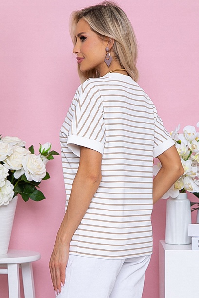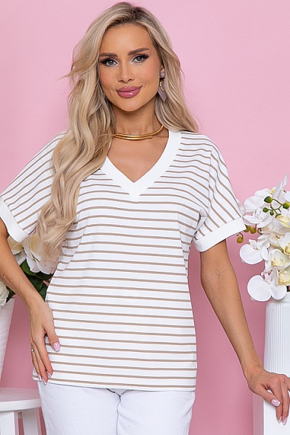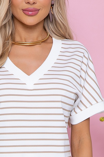 Джемпер с V-вырезом горловины из трикотажного полотна рибана в полоску(мелкая лапша производство Турция) свободного силуэта.Горловина и манжеты оформлены хлопковой,трикотажной рибаной(производство Турция)