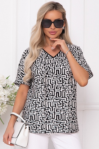 Блузка из комфортного текстильного полотна свободного силуэта с цельнокроеными рукавами,V-вырезом горловины и разрезами в боковых швах.