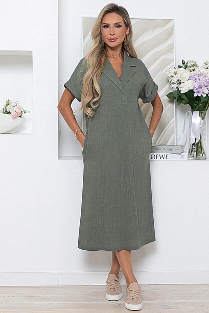 - Льняное платье свободного А-образного силуэта с цельнокроеными рукавами.Воротник отложной с лацканами.В боковых швах функциональные карманы.Пояс из основной ткани в комплекте. Можно носить без пояса как платье трапеция,а можно приталить поясом или ремнем.