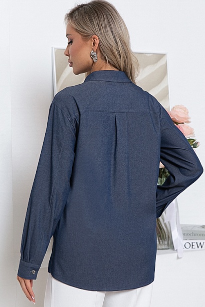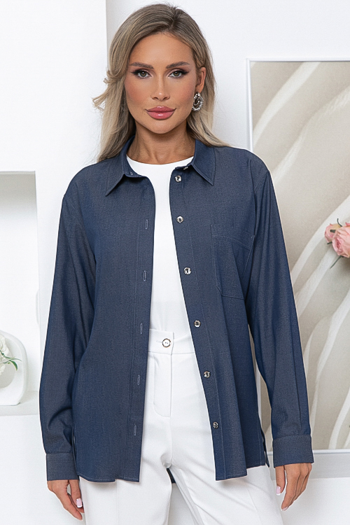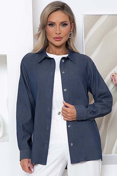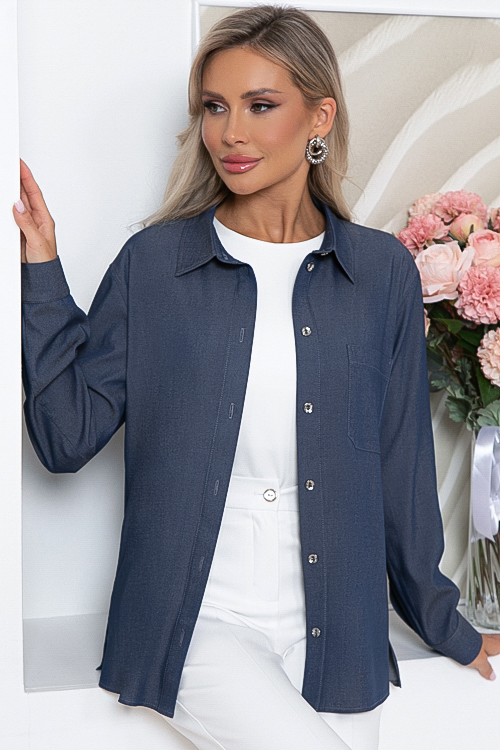 Рубашка из облегченной джинсы с центральной застежкой на пуговицы.Воротник отложной на стойке.