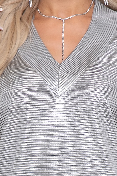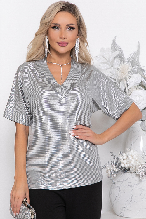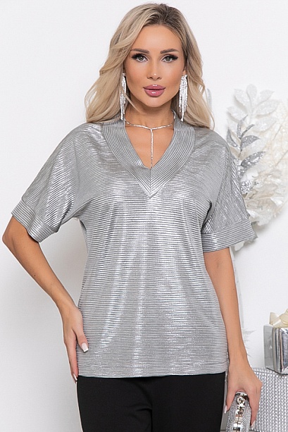 - Блузка из трикотажного полотна гофре с цельнокроеными рукавами и V-вырезом горловины.