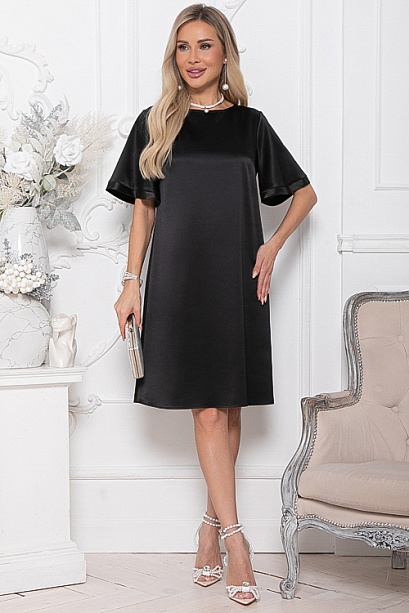 - Платье А-образного силуэта из плотного шелка.Спинка платья с изящным вырезом и завязками на шелковый бант.