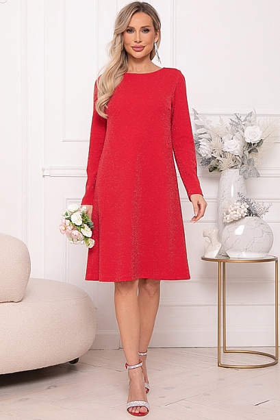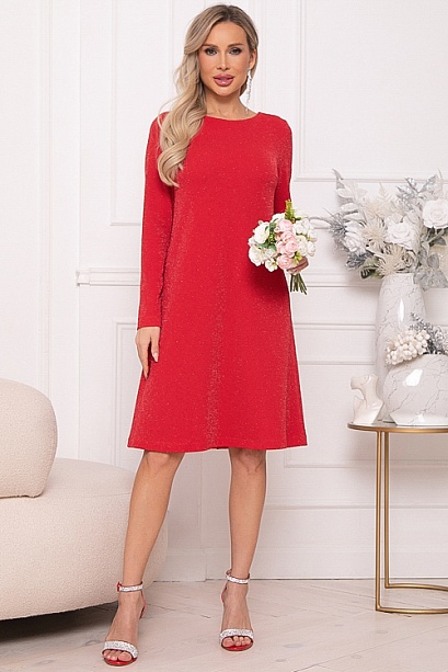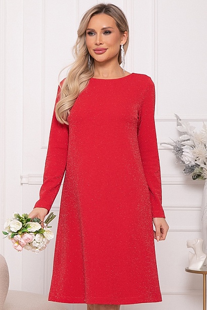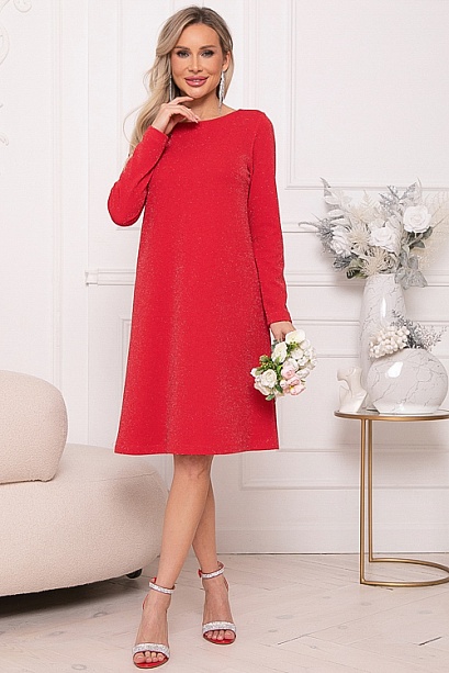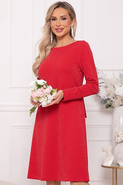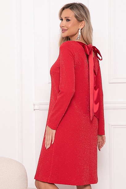 - Платье А-образного силуэта из трикотажного полотна с легким люрексом.Изюминка платья-вырез по спинке с завязывающимся бантом из шелка.