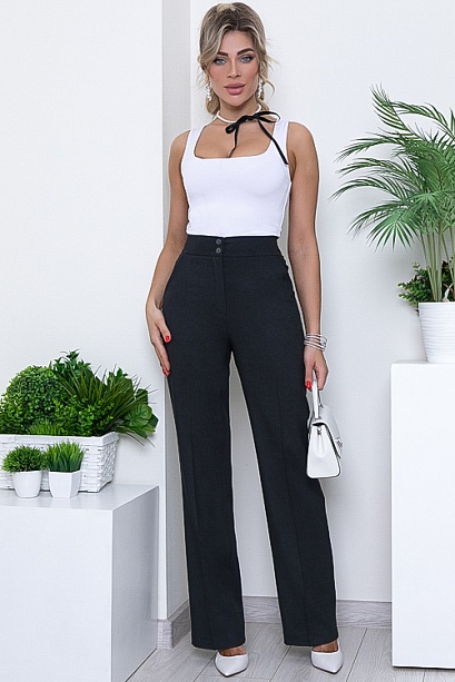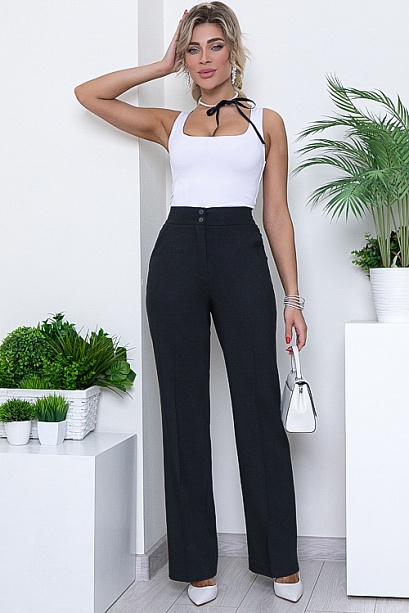 Брюки из качественной вискозной костюмной ткани(ткань производство Турция) с заутюженными стрелками, с высокой посадкой по талии застегивающиеся на молнию в гульфике.Пояс притачной с застежкой на две пуговицы.Для удобства в носке пояс по спинке собран на резину.По бокам подрезные функциональные карманы.