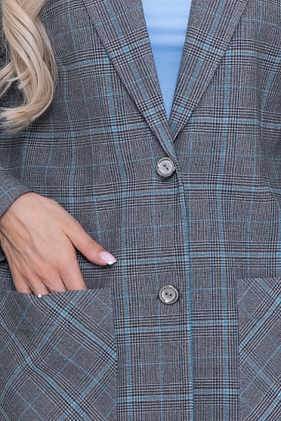 Жакет из комфортной,качественной костюмной ткани(ткань Производство Турция) свободного силуэта,в боковых швах разрезы.Центральная застежка на две пуговицы.По переду удобные накладные карманы.Рукава втачные длинные.
