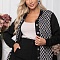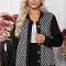 Комбинированный жакет из жаккардового трикотажного полотна и черного джерси с центральной застежкой на петли и пуговицы.